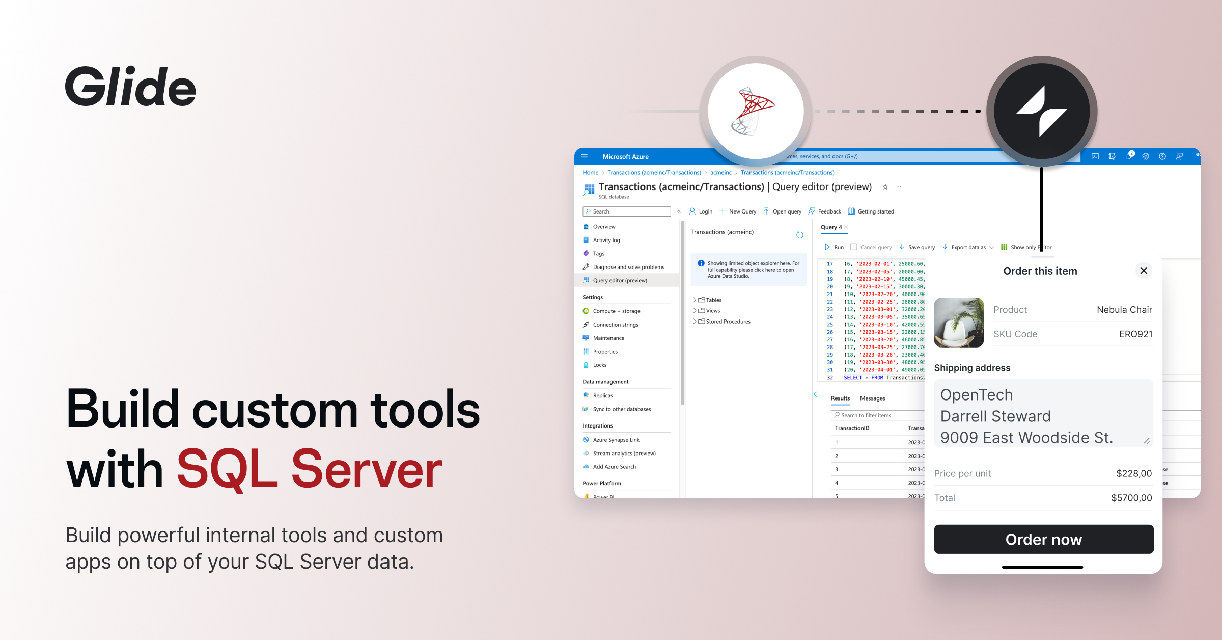 Glide connects directly to SQL Server and provides an easy interface to build custom apps that you can ship in days.